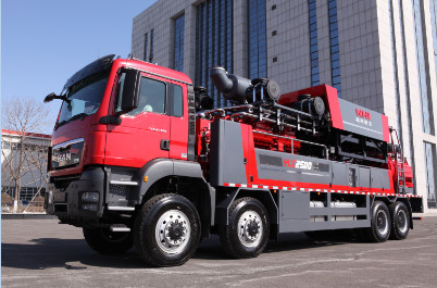 壓裂車系列產品是根據我國特殊路況、地質條件和壓裂施工工藝要求而研制的高端壓裂裝備,具有超高壓力、大功率、大排量和長時間連續作業的特點,可應用于頁巖氣田、致密性油氣田深井、中深井的各種壓裂、酸化作業。