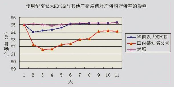 某蛋雞場注射華南農(nóng)大ND+H9(精品)油苗與其他廠家疫苗對產(chǎn)蛋率的影響(品種:海蘭褐)