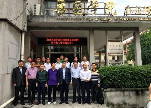 廣東省教育廳科研處副處長吳寶榆、華南農業大學科技處副處長劉長威、獸醫學院黨委書記梁梓森、廣州市華南農大生物藥品有限公司總經理梁昭平、天津瑞普生物藥業有限公司代表劉海霞,以及項目組負責人華南農業大學副校長廖明教授以及項目組成員參加了該鑒定會。
