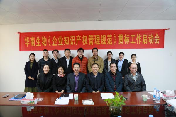 為響應省、市、區知識產權局管理部門的號召,更好的貫徹(GB/T29490-2013)標準,進一步提高企業的自主創新能力、知識產權運用、保護和管理水平,11月29日上午在廣州市華南農大生物藥品有限公司(以下簡稱“華南生物”)二樓會議室召開了知識產權貫標啟動大會。參加本次會議的主要領導、嘉賓有廣州市知識產權局規劃處黃愛民處長、增城區科技工業和信息化局知識產權科涂利雄科長、增城區科技工業和信息化局知識產權科吳龍山科長,以及華南生物常務副總經理王斌先生和各相關部門負責人、廣州市華學知識產權代理有限公司增城分公司陳燕嫻總經理與其項目成員。會議由行政總監許芬芬女士主持。