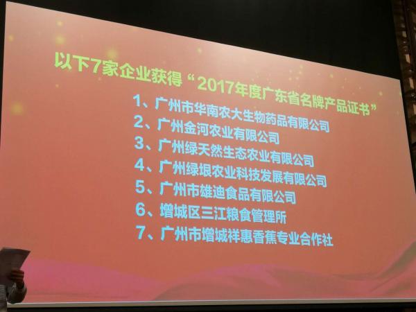為提高廣東省名牌產(chǎn)品(農(nóng)業(yè)類)的知名度,鼓勵農(nóng)業(yè)企業(yè)爭創(chuàng)名牌,做大做強我省農(nóng)業(yè)品牌,廣東省農(nóng)業(yè)廳決定在全省范圍內(nèi)對獲得2017年廣東省名牌產(chǎn)品(農(nóng)業(yè)類)的生產(chǎn)企業(yè)予以通報表彰,并頒發(fā)“廣東省名牌產(chǎn)品”證書。2018年1月25日,廣州市增城區(qū)農(nóng)業(yè)企業(yè)協(xié)會召開以“產(chǎn)融對接、助推農(nóng)企,不忘初心、服務(wù)會員”為主題的2017年年會暨省名牌產(chǎn)品頒牌儀式,廣州市增城區(qū)獲得“2017年度廣東省名牌產(chǎn)品”證書的企業(yè)有7家。