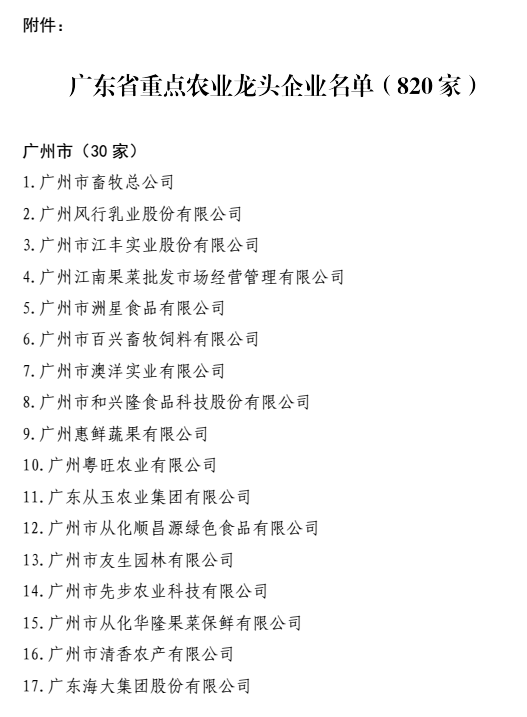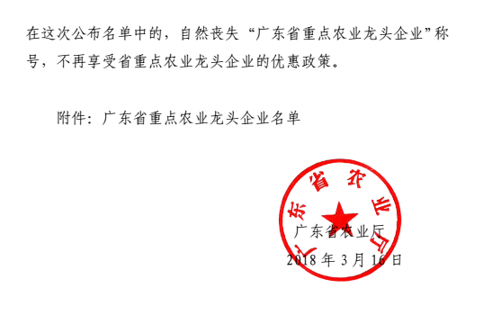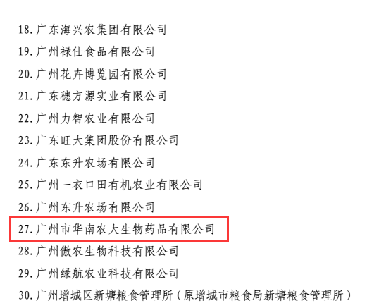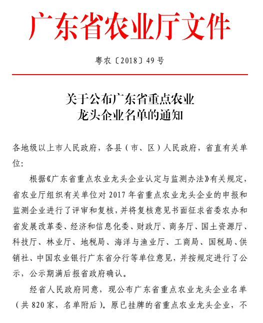 近日,廣東省農(nóng)業(yè)廳下發(fā)粵農(nóng)【2018】49號(hào)文件關(guān)于公布廣東省重點(diǎn)農(nóng)業(yè)龍頭企業(yè)名單的通知,廣州市華南農(nóng)大生物藥品有限公司晉升為廣東省重點(diǎn)農(nóng)業(yè)龍頭企業(yè),此次廣東省有820家企業(yè)獲此殊榮,其中廣州市企業(yè)有30家。