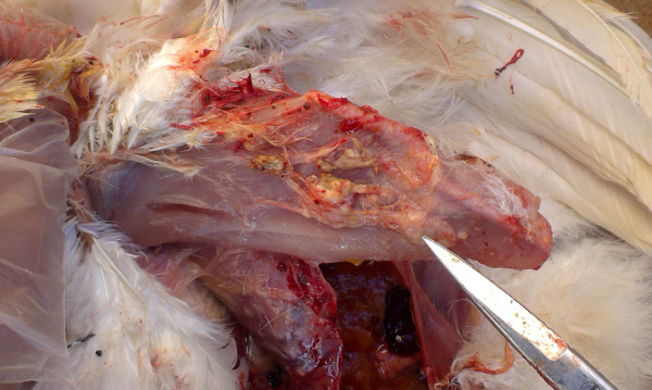 2、注射部位不當(dāng)或者由于再注射過程中針尖刺到骨頭導(dǎo)致針尖帶鉤,導(dǎo)致注射部位出現(xiàn)嚴(yán)重的組織反應(yīng),并對禽群造成進一步的傷害 。